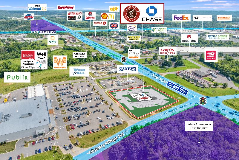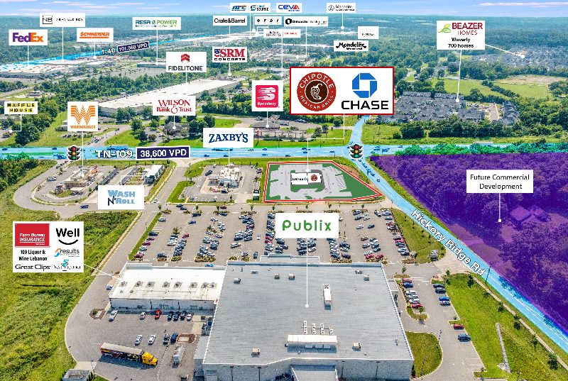 • Outparcel to New Publix Supermarket at the Signalized Intersection of TN-109 & Hickory Ridge Road with Traffic Counts Exceeding 40,000 Vehicles Per Day